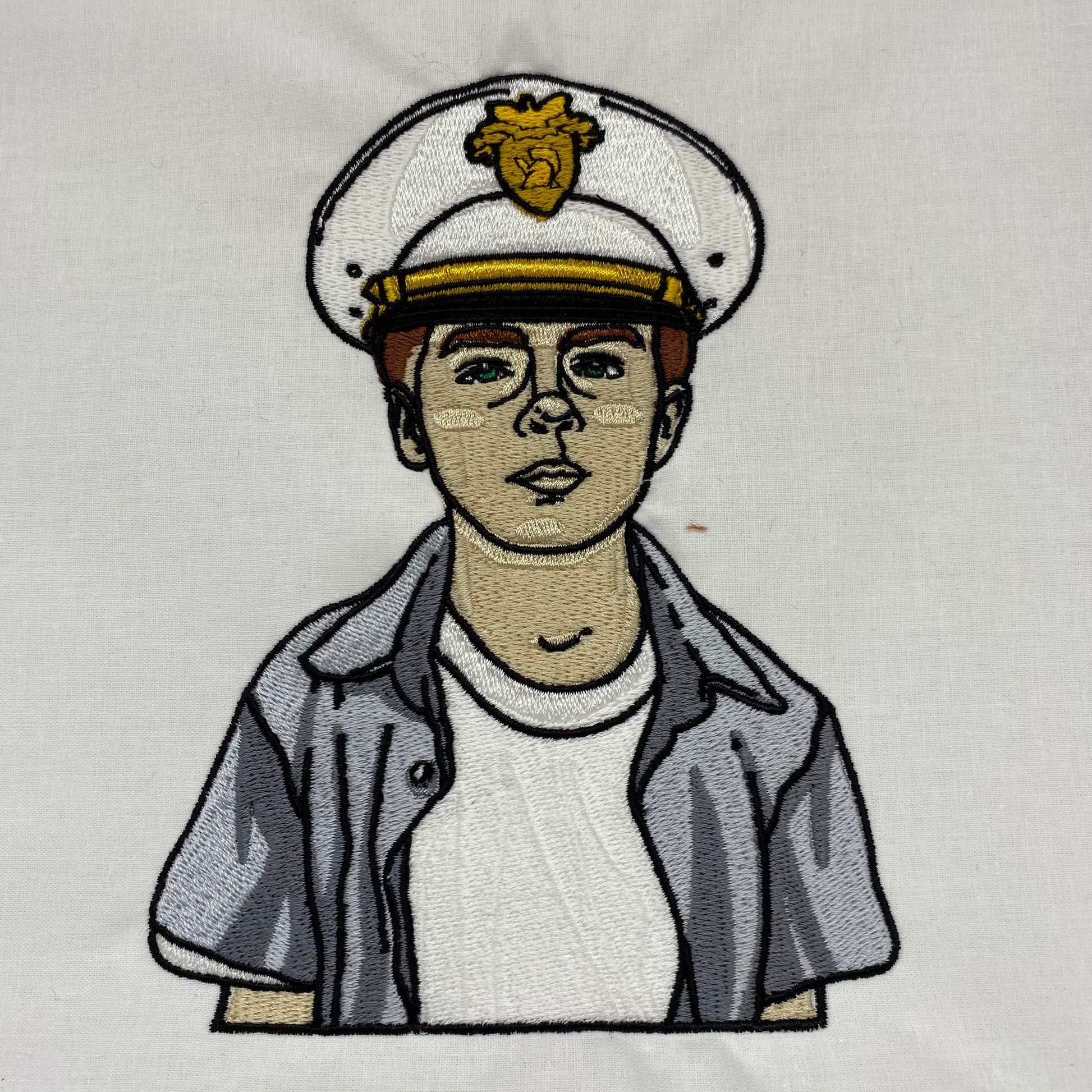 Beautiful 10 inch Embroidered Military Academy Quilt Block. These are exactly the same blocks I use to make quilts and throw pillows you see on this site. You can too. These logos are embroidered on white high quality quilting fabric. Most of them have 20,000 to 70,000 stitches and take over two hours to stitch out. If you look at the blocks on the quilts you will be able to have a better understanding of the size of the embroidery on the block. Satisfaction guaranteed.