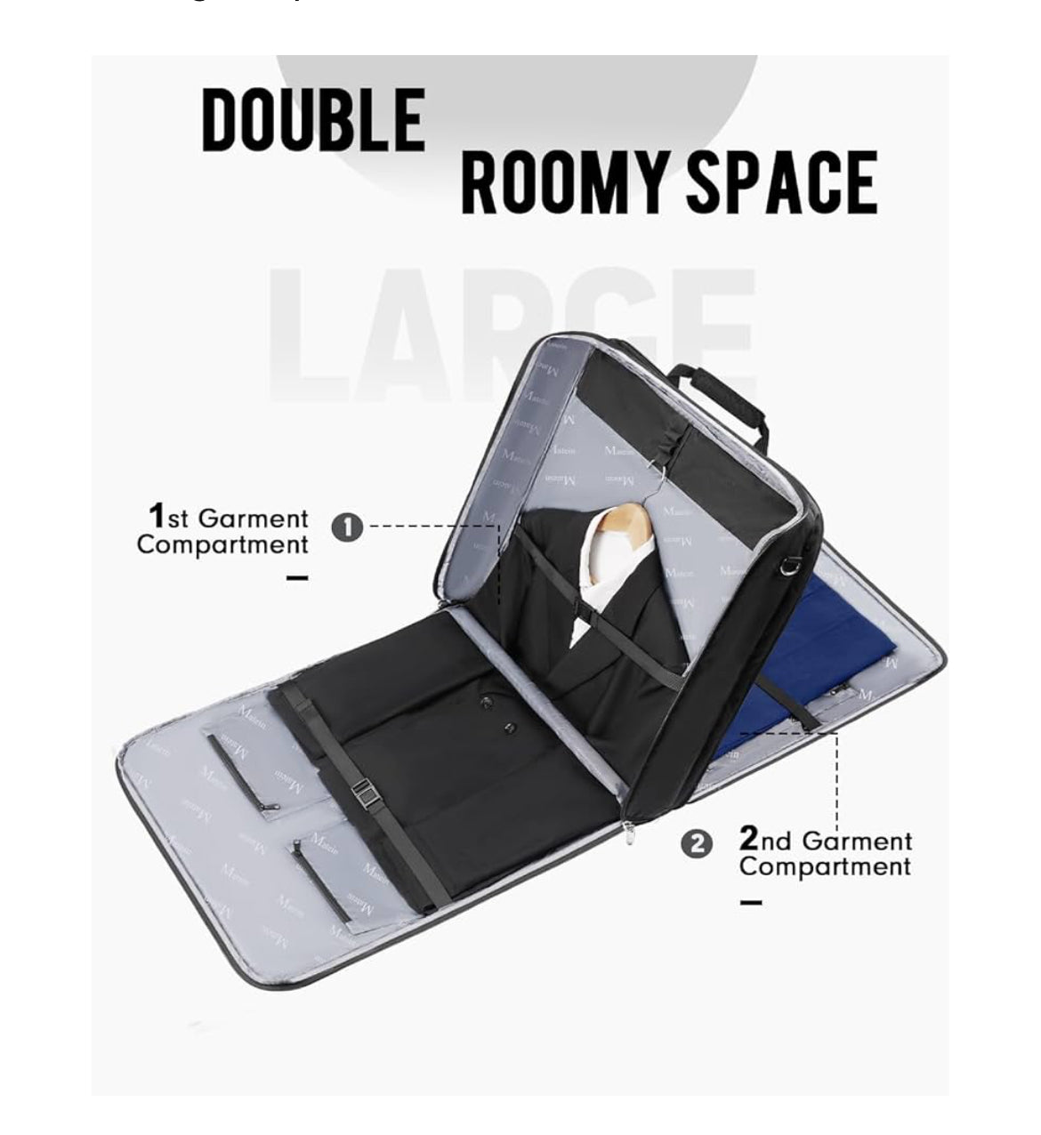WEST POINT Garment Bags for Travel, Large Double Layer Suit Bag Up to 6 Suits with Shoulder Strap, Foldable Carry On Garment Luggage for Hanging Clothes, Convertible Business Suitcase for Men Women, Black. Add an embroidered name for $15.